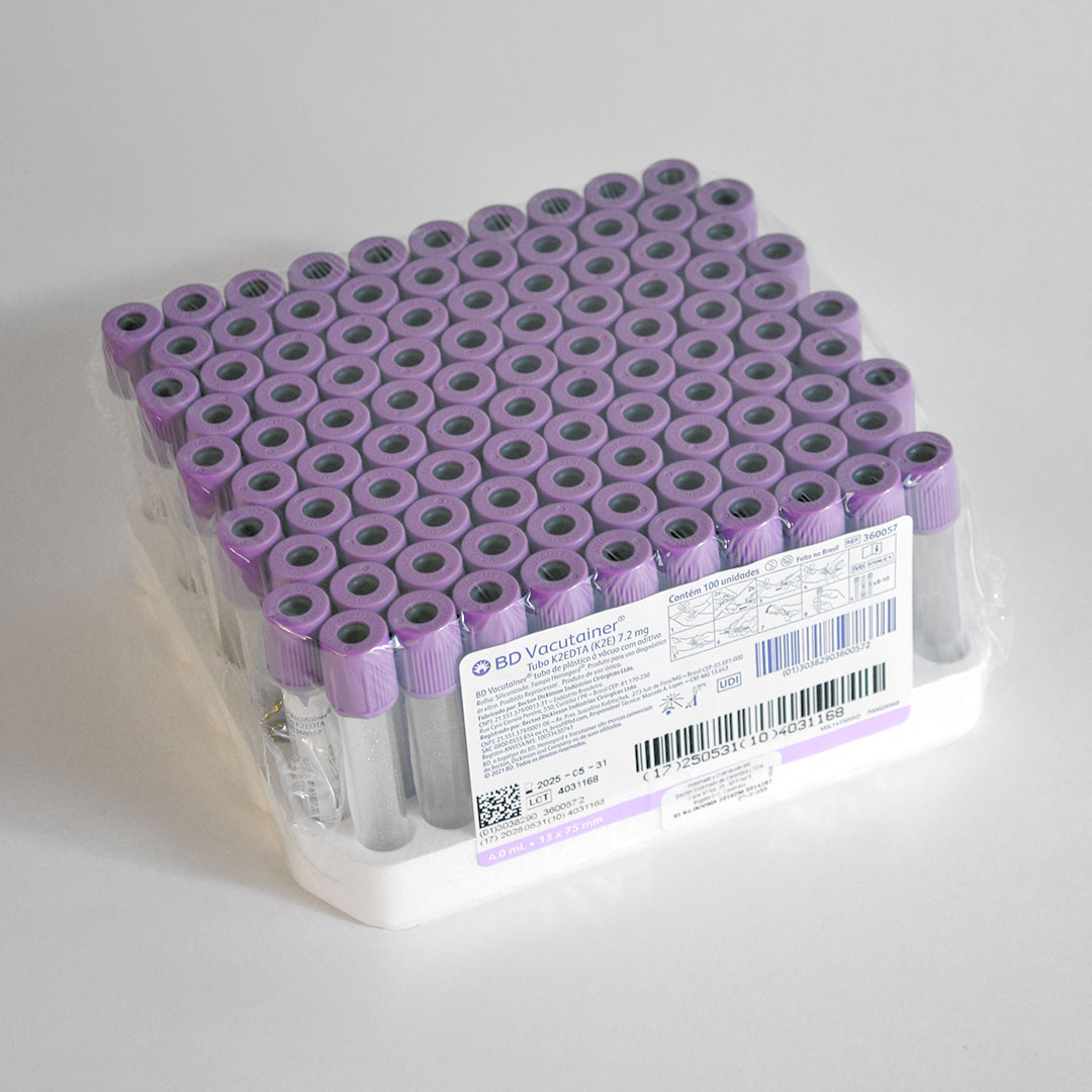 Ideal para hemogramas, tipificación sanguínea, conteo celular y pruebas hematológicas. Contiene anticoagulante EDTA K2 que preserva la muestra sin coagular. Volumen: 4 ml | Uso: Laboratorios clínicos, hospitales, IPS y centros médicos. Presentación: Gradillas de 100 unidades. Venta al por mayor y al detal. Envíos a todo el país.